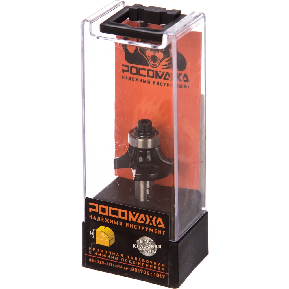 Фреза кромочная калевочная с нижним подшипником серия 1017 (25x11 мм; R6 мм; хвостовик 8 мм) Росомаха 801706