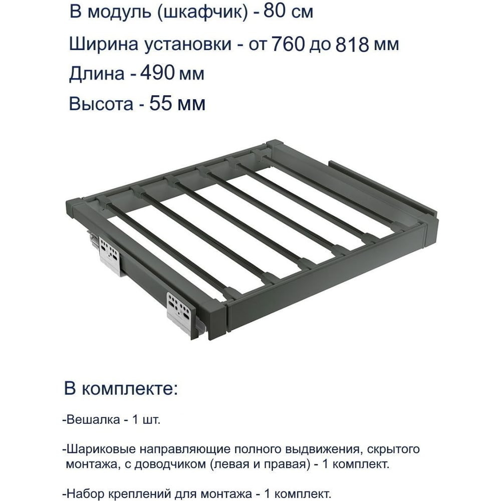 Вешалка для брюк GTV графит, в модуль 800 мм WG-WSPOD80-60