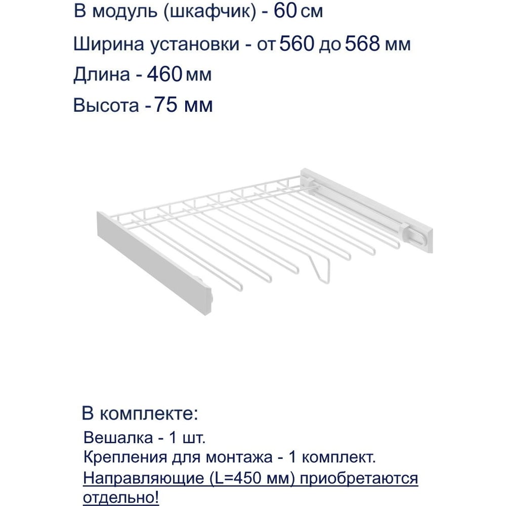 Вешалка для брюк GTV SMART, в модуль 600 мм, без направляющих, белая W-WSPD60-BP-10