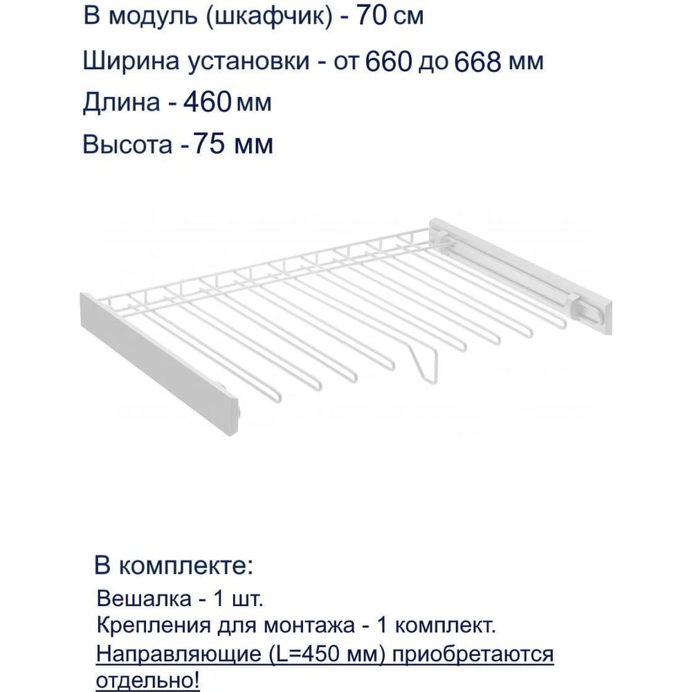 Вешалка для брюк GTV SMART, в модуль 700 мм, без направляющих, белая W-WSPD70-BP-10