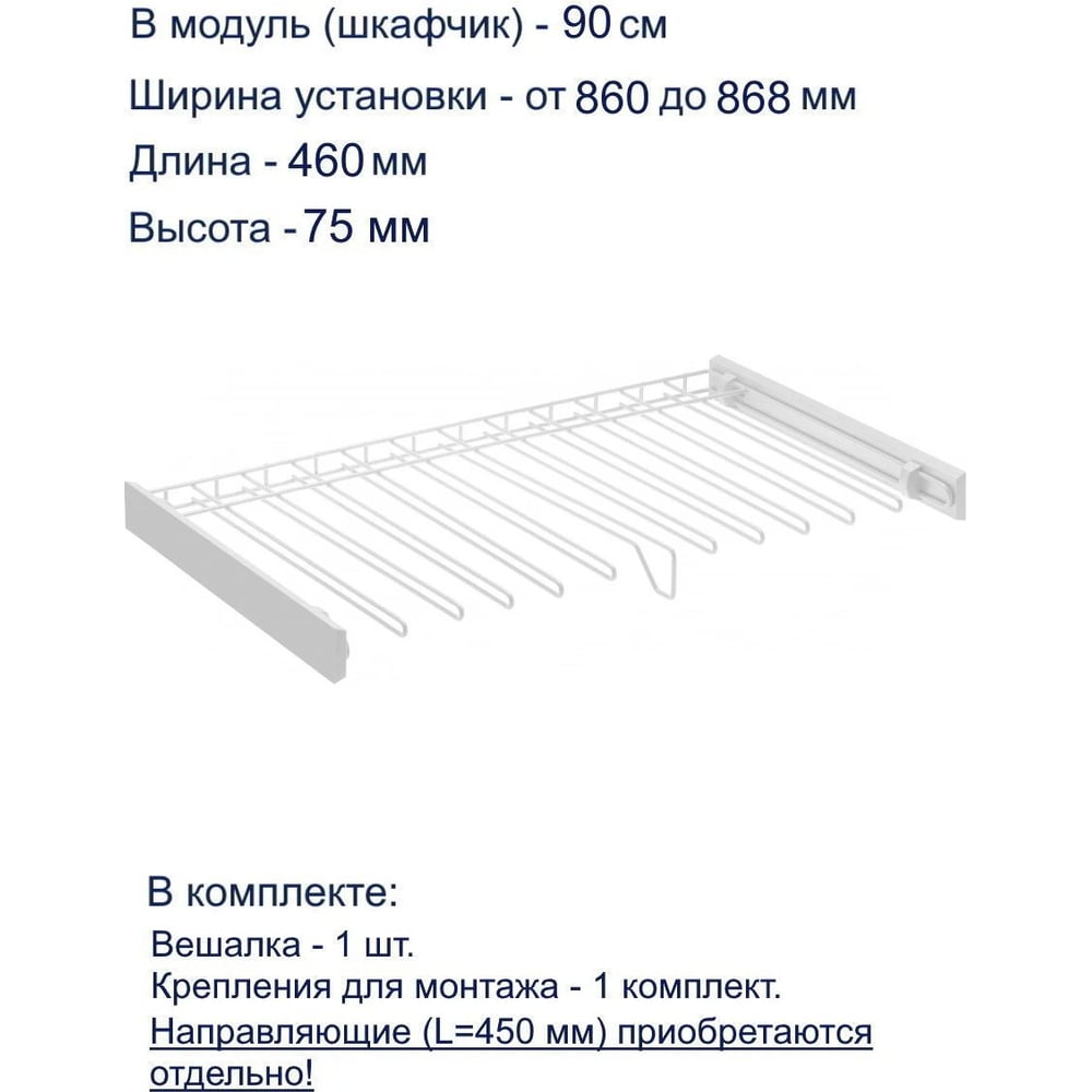 Вешалка для брюк GTV SMART, в модуль 900 мм, без направляющих, белая W-WSPD90-BP-10