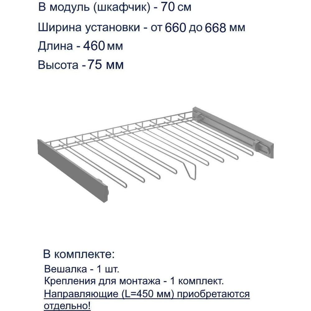 Вешалка для брюк GTV SMART, в модуль 700 мм, без направляющих, графит W-WSPD70-BP-60