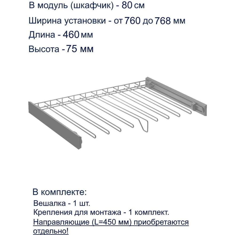 Вешалка для брюк GTV SMART, в модуль 800 мм, без направляющих, графит W-WSPD80-BP-60