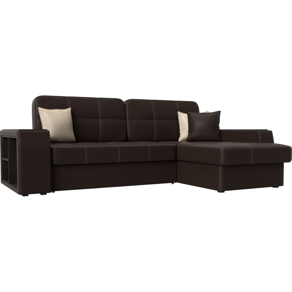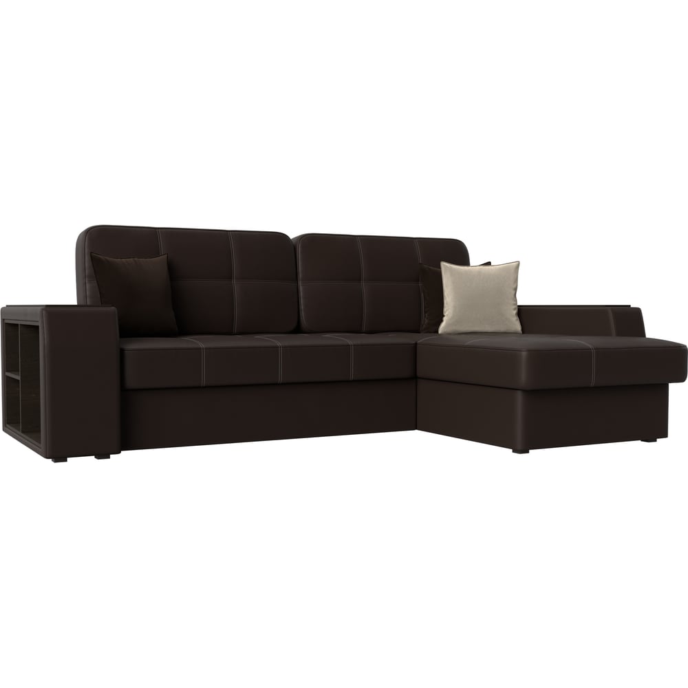 Угловой диван Лига диванов Брюссель правый полностью экокожа коричневая 29396