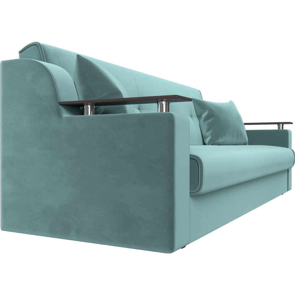 Габариты без упаковки 2100х850х900 мм Высота 900 мм Длина 2100 мм Ширина 850 мм Цвет бирюзовый Вес нетто 68 кг Стиль классика Форма прямой Наполнитель ППУ Подлокотники есть Max нагрузка 100 кг Высота спинки 500 мм Материал обивки велюр Палитра зеленый Материал ножек пластик Цвет ножек черный Высота сиденья 400 мм Материал каркаса ЛДСП Раскладной есть Ножки есть Количество спальных мест 1.5 Длина спального места в разложенном виде 1800 мм Ширина спального места в разложенном виде 1150 мм Полки нет Декоративные подушки в комплекте есть Количество посадочных мест 3 Ящик для белья есть Механизм трансформации книжка Модульный нет