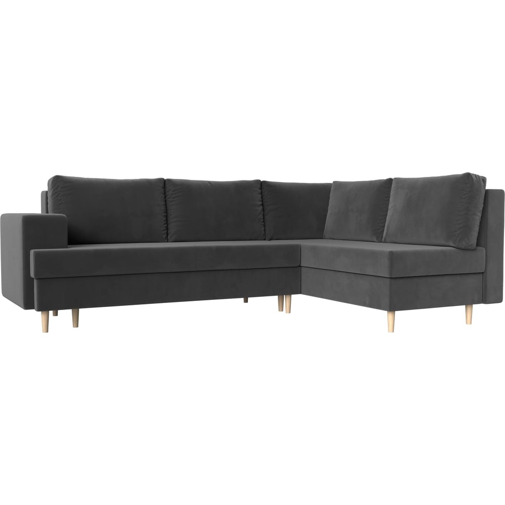 Угловой диван Лига диванов Сильвана правый полностью велюр серый 100843
