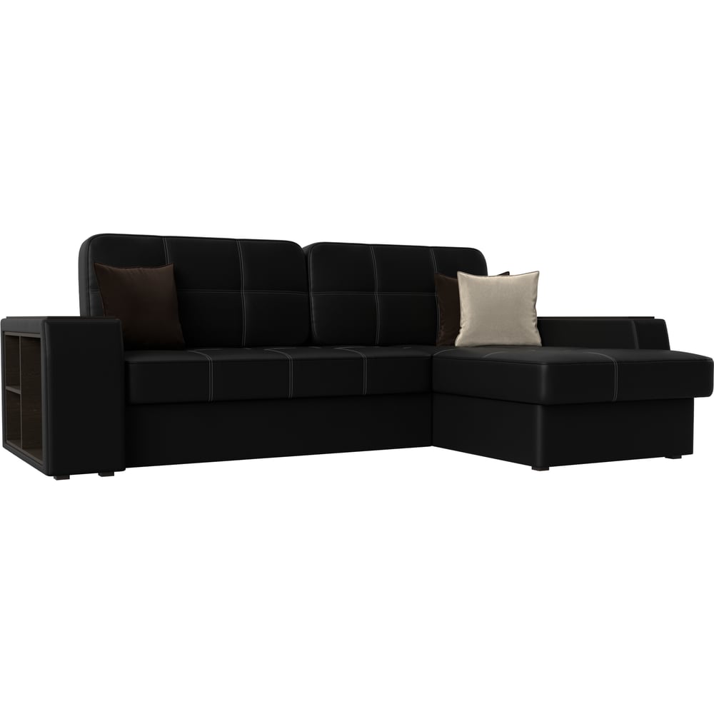 Угловой диван Лига диванов Брюссель правый полностью экокожа черная 29397