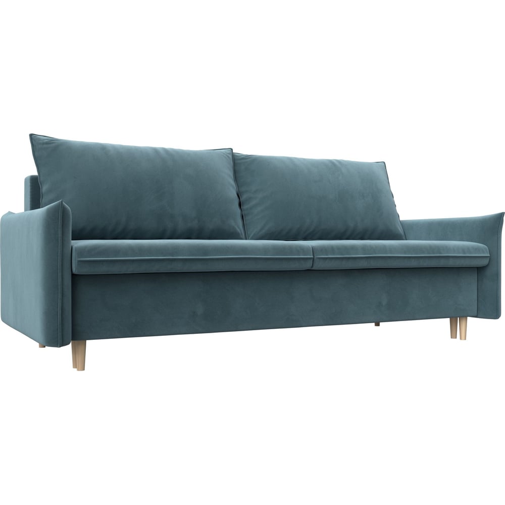 Габариты без упаковки 2150х1030х800 мм Высота 800 мм Длина 2150 мм Ширина 1030 мм Цвет бирюзовый Вес нетто 87 кг Стиль современный Форма прямой Наполнитель ППУ, резинотканевые ремни Подлокотники есть Max нагрузка 100 кг Высота спинки 330 мм Материал обивки велюр Палитра зеленый Материал ножек дерево Цвет ножек бежевый Высота сиденья 470 мм Материал каркаса ЛДСП Раскладной есть Ножки есть Количество спальных мест 2 Длина спального места в разложенном виде 1950 мм Ширина спального места в разложенном виде 1430 мм Полки нет Декоративные подушки в комплекте нет Количество посадочных мест 3 Ящик для белья есть Механизм трансформации еврокнижка Модульный нет