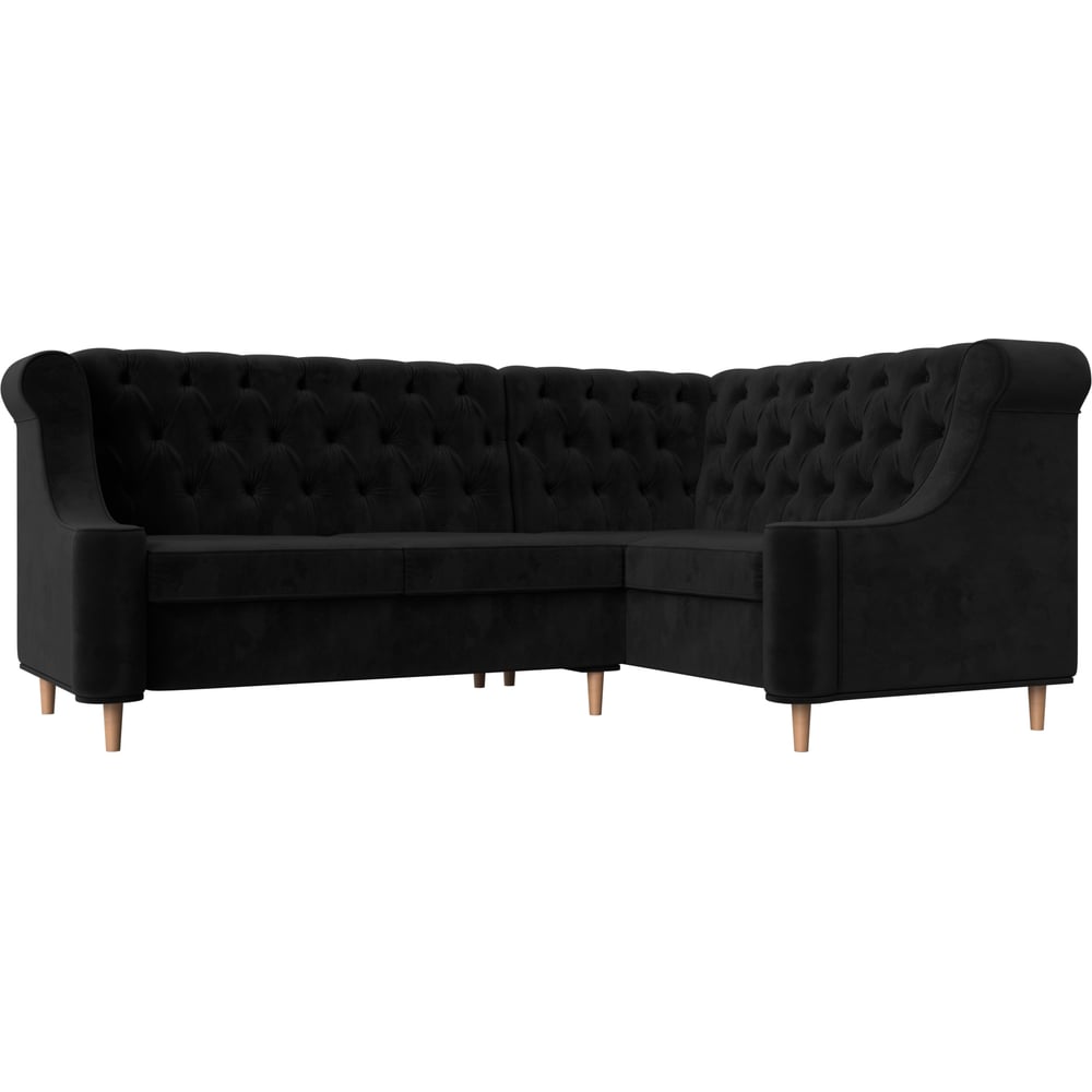 Угловой диван Лига диванов Бронкс угол правый полностью велюр черный 110368