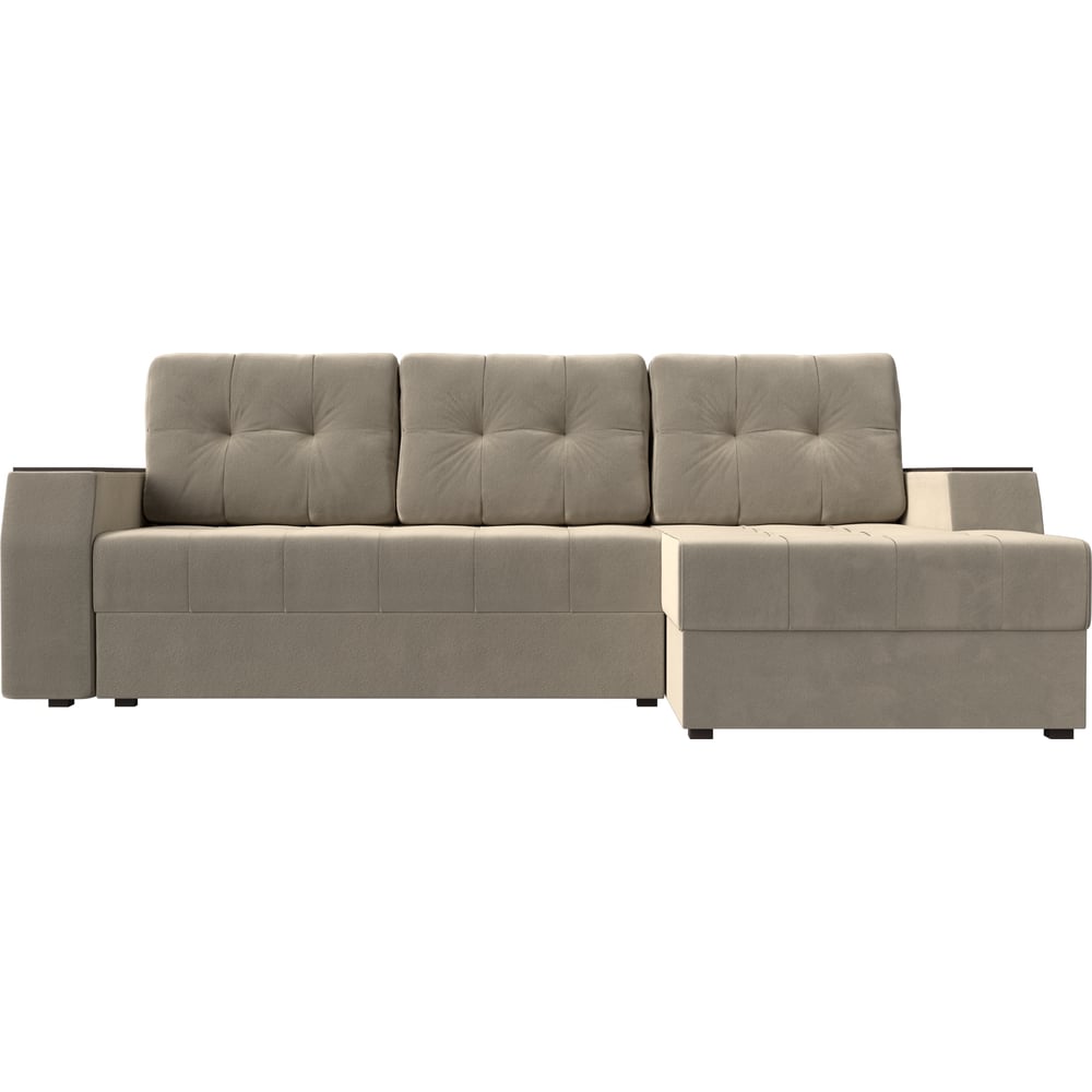 Угловой диван Лига диванов Эмир БС правый полностью микровельвет бежевый 110413