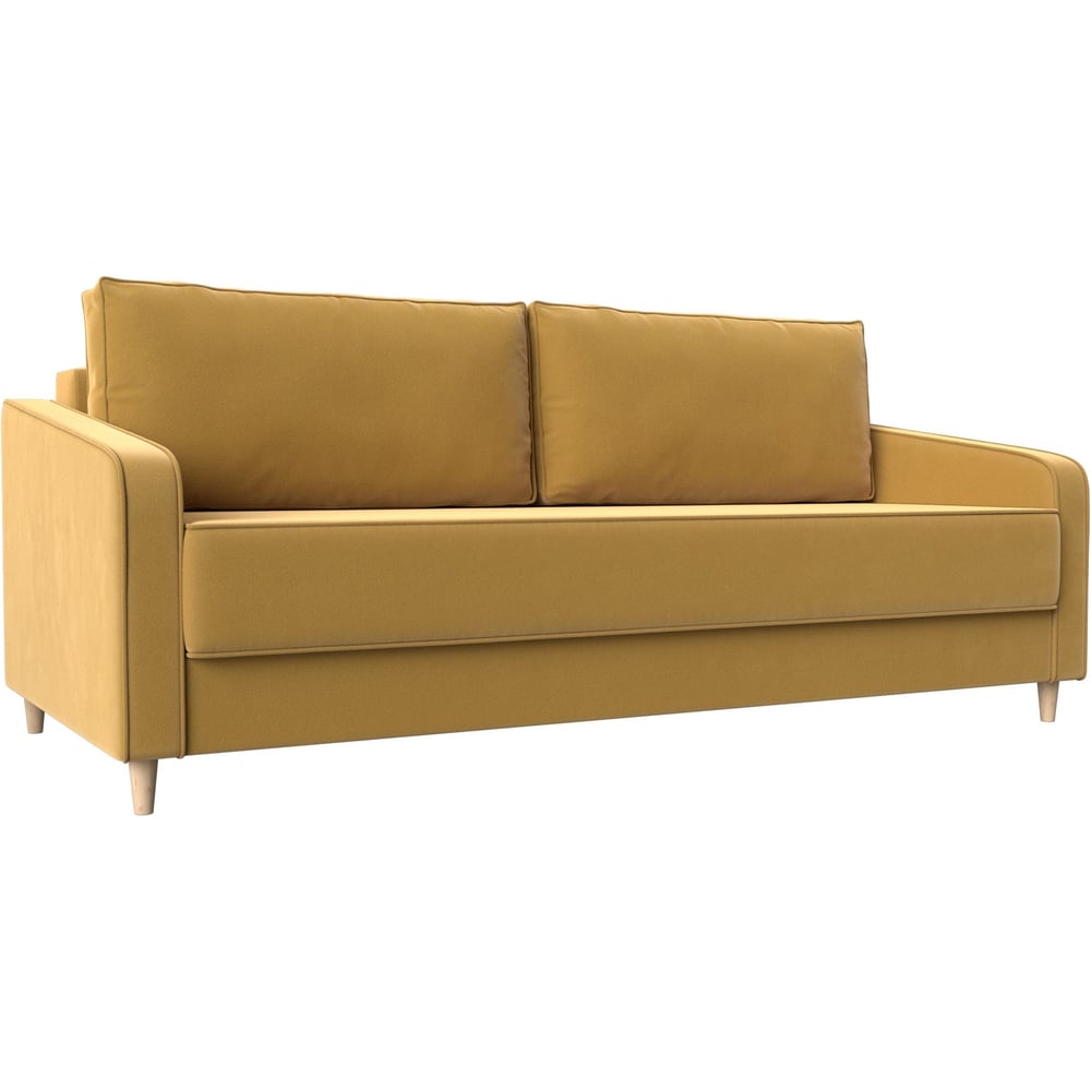 Габариты без упаковки 2180х980х980 мм Высота 980 мм Длина 2180 мм Ширина 980 мм Цвет желтый Вес нетто 100 кг Стиль классика Форма прямой Наполнитель Блок независимых пружин Подлокотники есть Max нагрузка 120 кг Высота спинки 500 мм Материал обивки микровельвет Палитра желтый Материал ножек дерево Цвет ножек бежевый Высота сиденья 480 мм Материал каркаса ЛДСП, массив дерева, фанера Раскладной есть Ножки есть Количество спальных мест 1.5 Длина спального места в разложенном виде 1950 мм Ширина спального места в разложенном виде 1390 мм Полки нет Количество посадочных мест 3 Ящик для белья есть Механизм трансформации пантограф (тик-так) Модульный нет