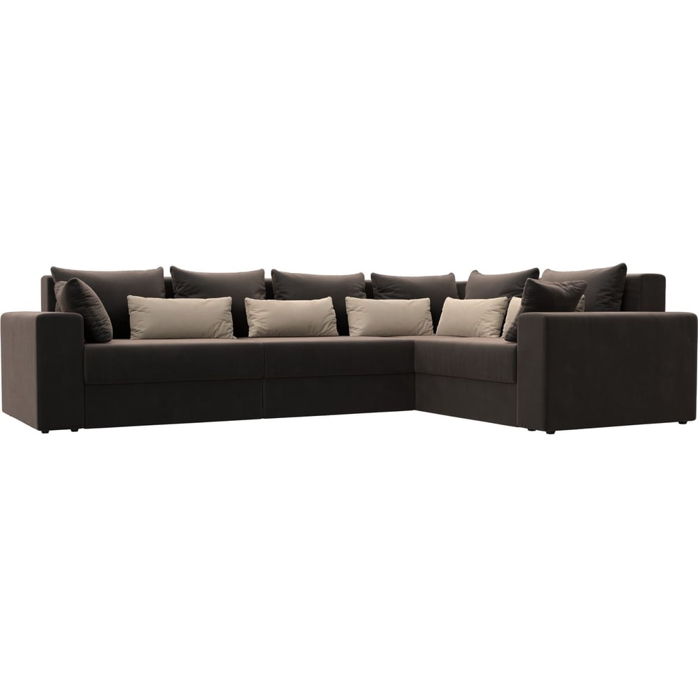 Габариты без упаковки 3350х2300х900 мм Высота 900 мм Длина 3350 мм Ширина 2300 мм Цвет коричневый-бежевый Вес нетто 259 кг Стиль современный Форма с правым углом Наполнитель Блок независимых пружин Подлокотники есть Max нагрузка 120 кг Высота спинки 420 мм Материал обивки велюр Палитра коричневый Материал ножек пластик Цвет ножек черный Высота сиденья 480 мм Материал каркаса ЛДСП Раскладной есть Ножки есть Количество спальных мест 2 Длина спального места в разложенном виде 2860 мм Ширина спального места в разложенном виде 1410 мм Полки нет Декоративные подушки в комплекте есть Количество посадочных мест 5 Ящик для белья есть Механизм трансформации еврокнижка Модульный нет
