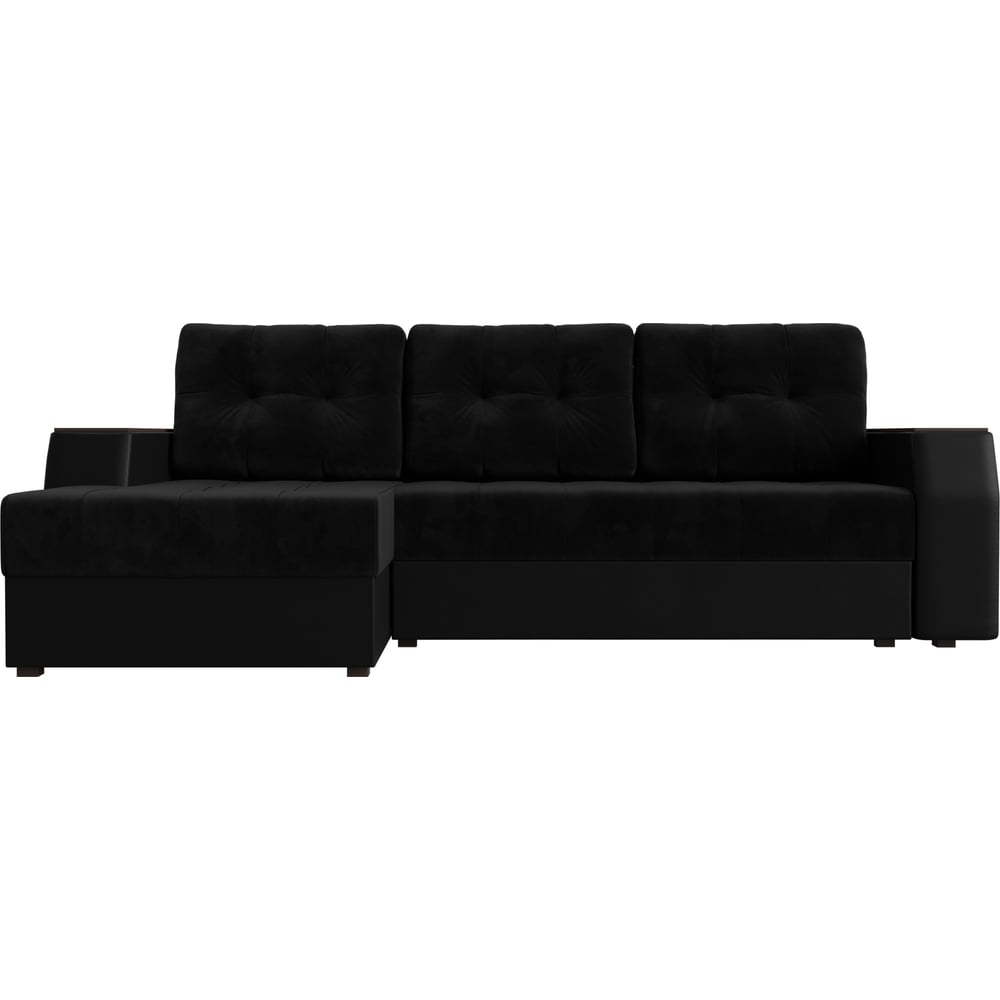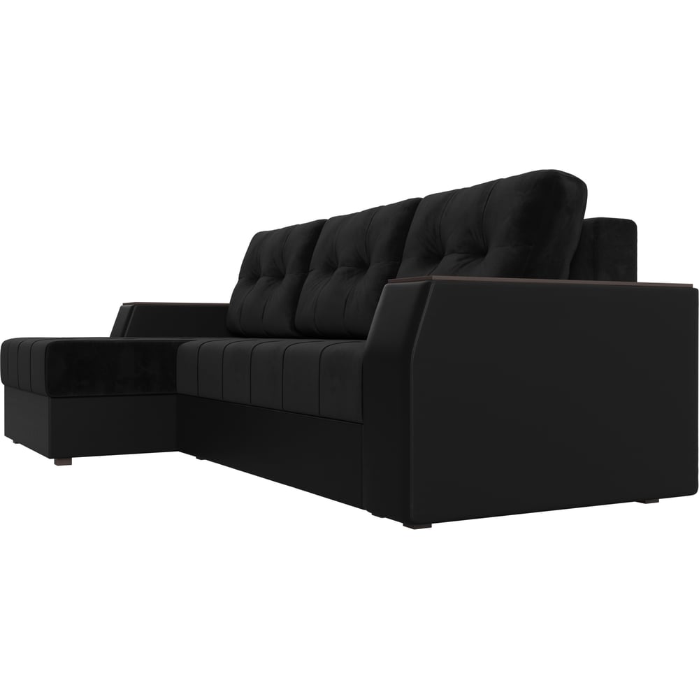 Угловой диван Лига диванов Эмир БС левый основа велюр черный, компаньон экокожа черная 110462L