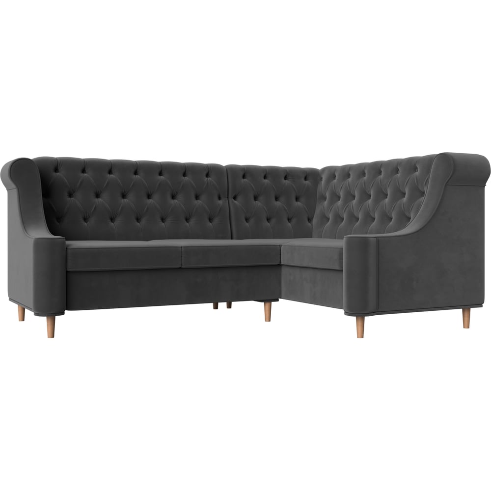 Угловой диван Лига диванов Бронкс угол правый полностью велюр серый 110366