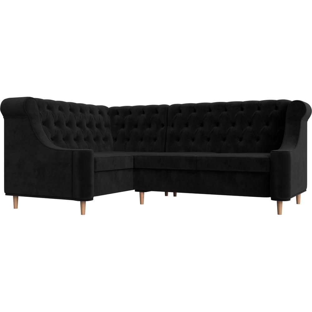 Угловой диван Лига диванов Бронкс угол левый полностью велюр черный 110368L