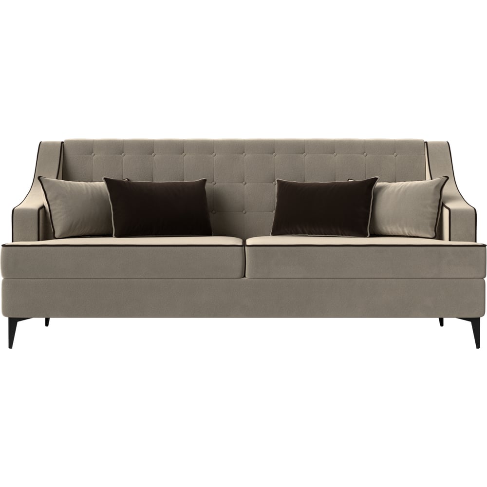 Прямой диван Лига диванов Марк полностью микровельвет бежевый, кант микровельвет коричневый, подушки микровельвет БЕЖ/КОР 111902