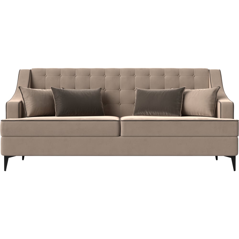 Прямой диван Лига диванов Марк полностью велюр бежевый, кант велюр коричневый, подушки велюр БЕЖ/КОР 111894