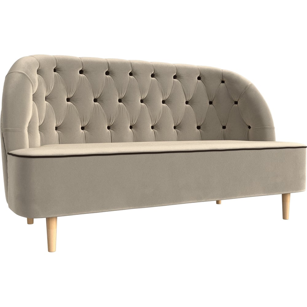 Кушетка Лига диванов Амиса полностью микровельвет бежевый, кант микровельвет коричневый 109835