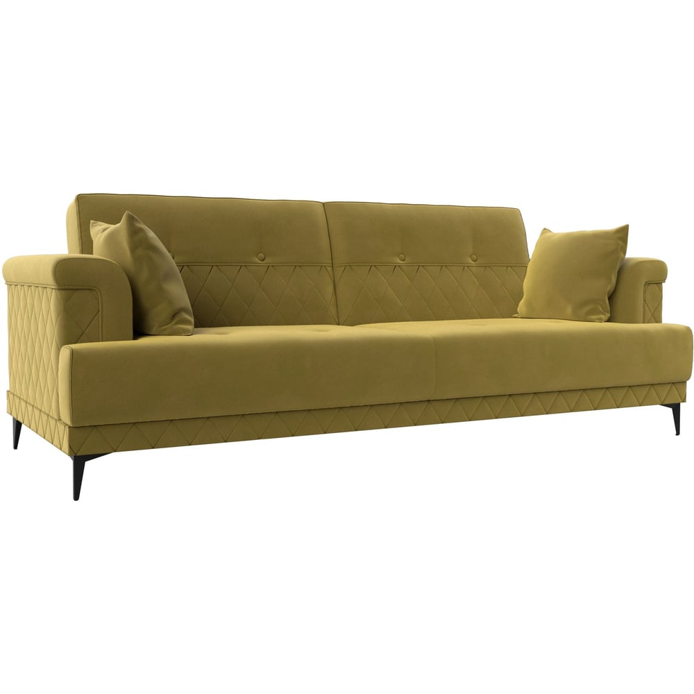 Габариты без упаковки 2270х1000х920 мм Высота 1000 мм Длина 2270 мм Ширина 920 мм Цвет желтый Вес нетто 78 кг Стиль современный Форма прямой Наполнитель Блок независимых пружин, ППУ Подлокотники есть Max нагрузка 440 кг Высота спинки 1000 мм Материал обивки микровельвет Палитра желтый Материал ножек металл Цвет ножек черный Высота сиденья 480 мм Раскладной есть Ножки есть Количество спальных мест 1.5 Длина спального места в разложенном виде 1950 мм Ширина спального места в разложенном виде 1140 мм Полки нет Декоративные подушки в комплекте есть Количество посадочных мест 4 Ящик для белья нет Механизм трансформации книжка Модульный нет