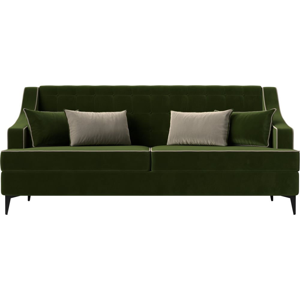 Прямой диван Лига диванов Марк полностью микровельвет зеленый, кант микровельвет бежевый, подушки микровельвет ЗЕЛ/БЕЖ 111905