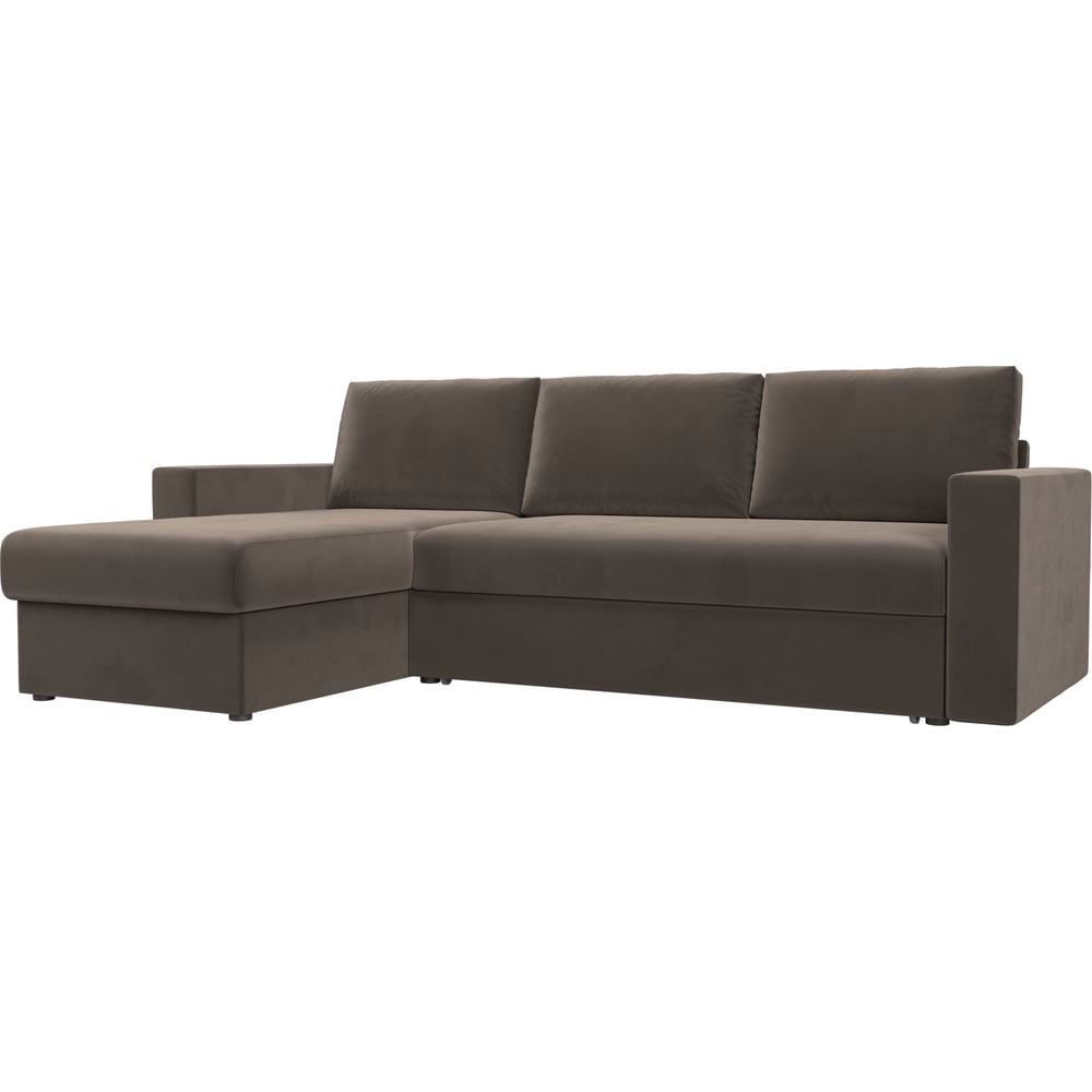 Габариты без упаковки 2300х730х1530 мм Высота 730 мм Длина 2300 мм Ширина 1530 мм Цвет коричневый Вес нетто 120 кг Стиль современный Форма с левым углом Наполнитель ППУ Подлокотники есть Max нагрузка 220 кг Высота спинки 500 мм Материал обивки велюр Палитра коричневый Материал ножек пластик Цвет ножек черный Высота сиденья 440 мм Материал каркаса ДСП, ЛДСП, Брус Раскладной есть Ножки есть Количество спальных мест 2 Длина спального места в разложенном виде 1990 мм Ширина спального места в разложенном виде 1410 мм Полки нет Декоративные подушки в комплекте нет Количество посадочных мест 4 Ящик для белья есть Механизм трансформации дельфин Модульный нет