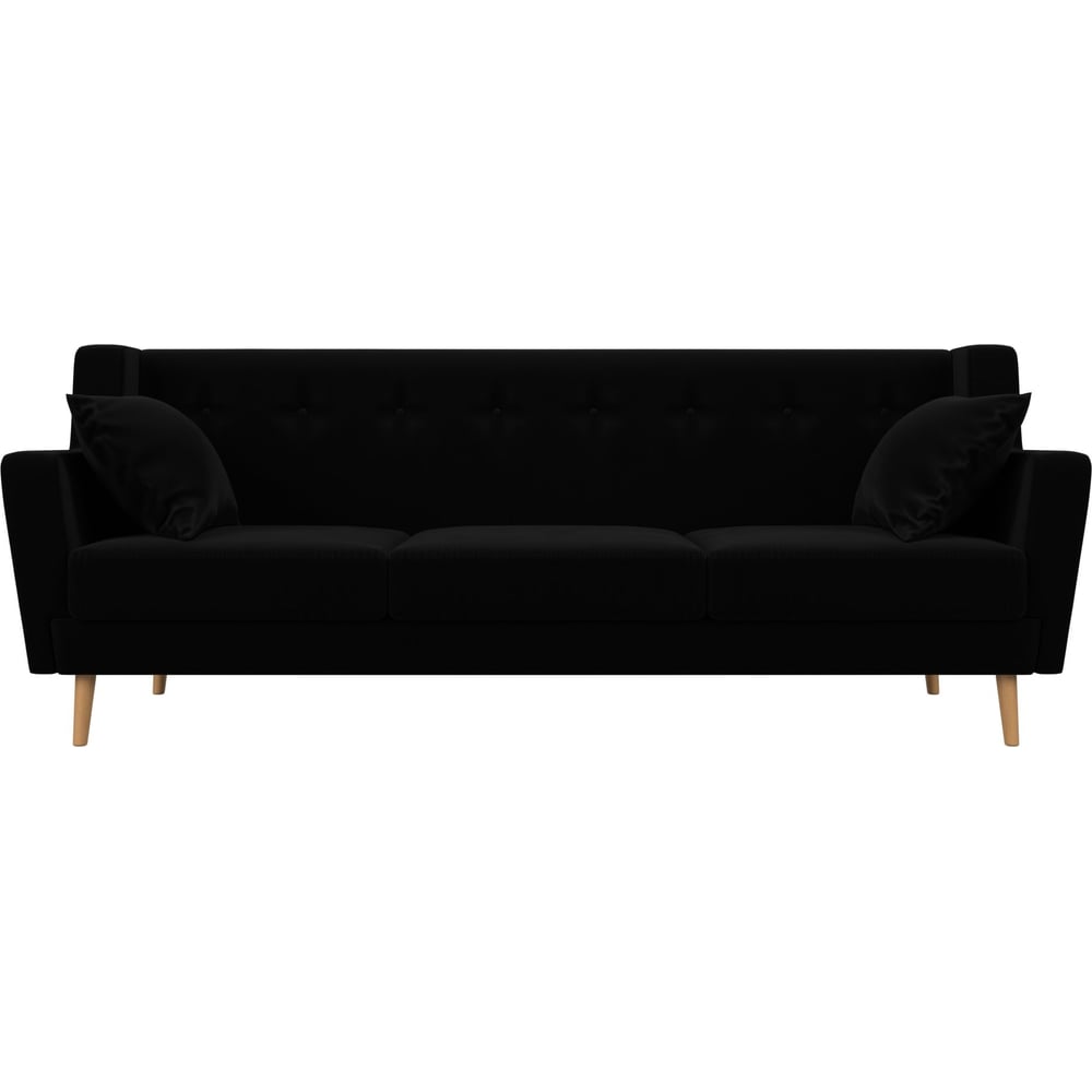 Прямой диван Лига диванов Брайтон 3 полностью микровельвет черный 109163