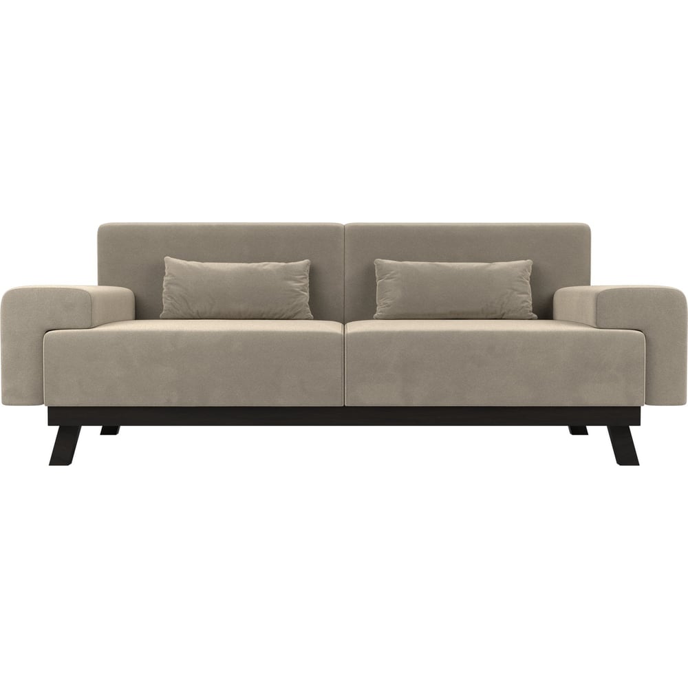 Габариты без упаковки 2060х780х840 мм Высота 840 мм Длина 2060 мм Ширина 780 мм Цвет бежевый Вес нетто 60 кг Стиль современный Форма прямой Наполнитель ППУ Подлокотники есть Max нагрузка 100 кг Высота спинки 410 мм Материал обивки микровельвет Палитра бежевый Материал ножек дерево Цвет ножек коричневый Высота сиденья 430 мм Материал каркаса ЛДСП Раскладной нет Ножки есть Количество спальных мест нет Полки нет Декоративные подушки в комплекте есть Количество посадочных мест 2 Ящик для белья нет Механизм трансформации нет Модульный нет