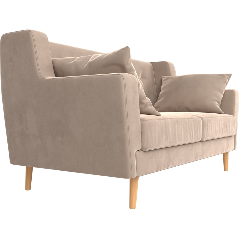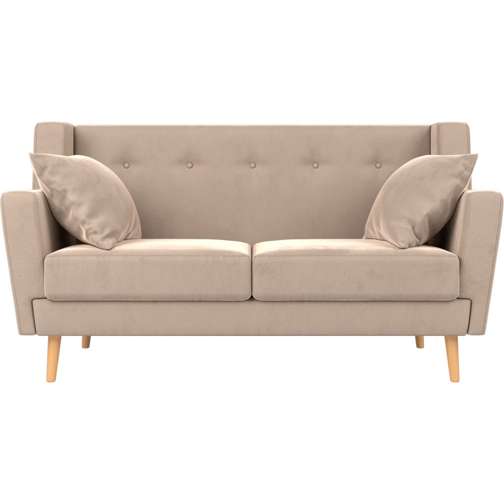 Габариты без упаковки 1390х800х850 мм Высота 850 мм Длина 1390 мм Ширина 800 мм Цвет бежевый Вес нетто 49 кг Стиль современный Форма прямой Наполнитель ППУ Подлокотники есть Max нагрузка 100 кг Высота спинки 410 мм Материал обивки велюр Палитра бежевый Материал ножек дерево Цвет ножек бежевый Высота сиденья 440 мм Материал каркаса ЛДСП Раскладной нет Ножки есть Количество спальных мест нет Полки нет Декоративные подушки в комплекте есть Количество посадочных мест 2 Ящик для белья нет Механизм трансформации нет Модульный нет
