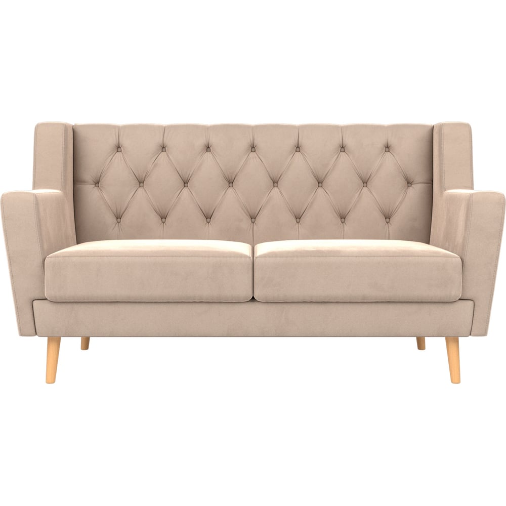 Габариты без упаковки 1390х800х850 мм Высота 850 мм Длина 1390 мм Ширина 800 мм Цвет бежевый Вес нетто 49 кг Стиль современный Форма прямой Наполнитель ППУ Подлокотники есть Max нагрузка 100 кг Высота спинки 410 мм Материал обивки велюр Палитра бежевый Материал ножек дерево Цвет ножек бежевый Высота сиденья 440 мм Материал каркаса ЛДСП Раскладной нет Ножки есть Количество спальных мест нет Полки нет Декоративные подушки в комплекте нет Количество посадочных мест 2 Ящик для белья нет Механизм трансформации нет Модульный нет