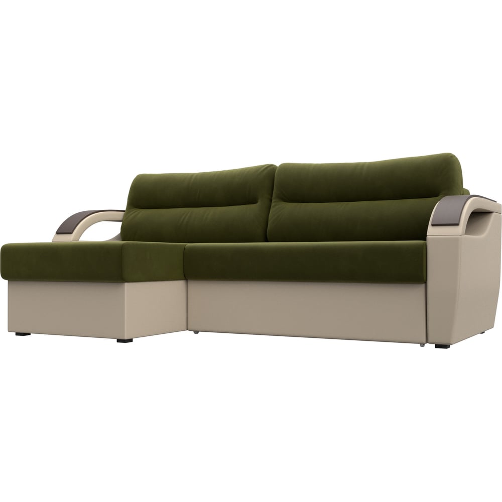 Габариты без упаковки 2260х920х1510 мм Высота 920 мм Длина 2260 мм Ширина 1510 мм Цвет зеленый/бежевый Вес нетто 140 кг Стиль современный Форма с левым углом Наполнитель ППУ, резинотканевые ремни Подлокотники есть Max нагрузка 220 кг Материал обивки микровельвет/экокожа Палитра зеленый Материал ножек пластик Высота сиденья 420 мм Материал каркаса ДСП, ЛДСП Раскладной есть Ножки есть Количество спальных мест 2 Длина спального места в разложенном виде 1960 мм Ширина спального места в разложенном виде 1470 мм Полки нет Ящик для белья есть Механизм трансформации еврокнижка Модульный нет