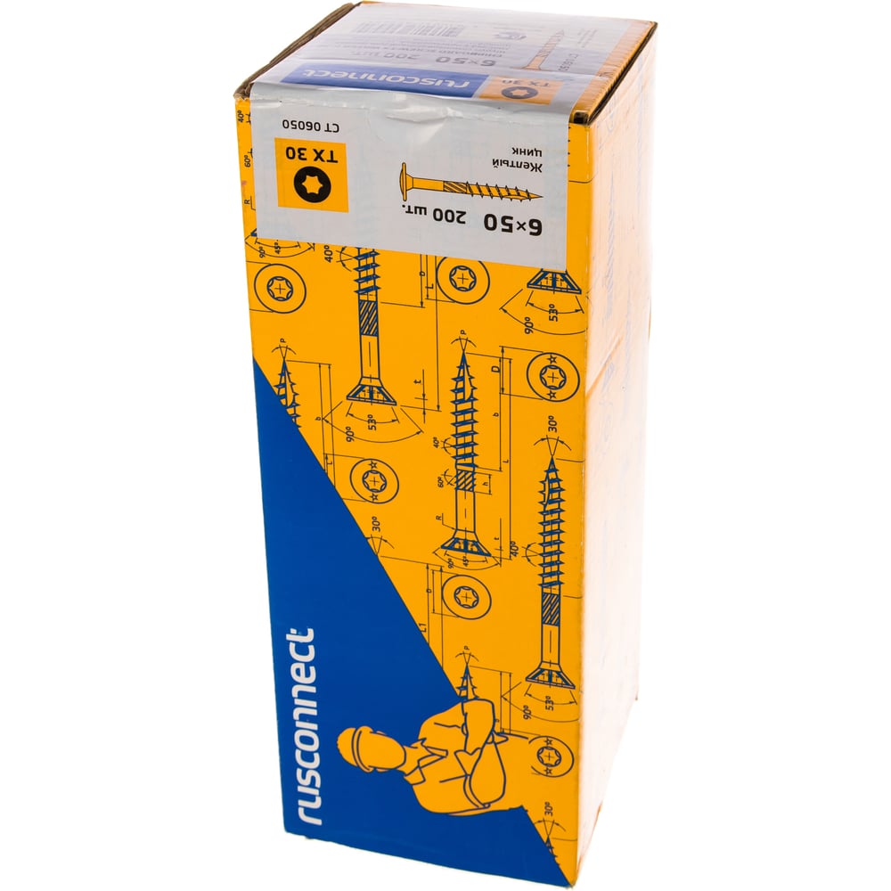 Шуруп Rusconnect CT 06050 с/нарез. д/дерева, прессшайба 6х50 200 шт. Желтый цинк 320605