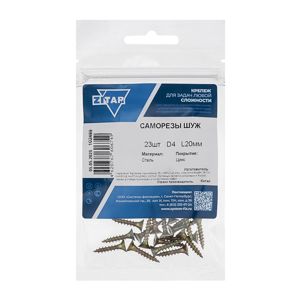 Саморез ШУж с потайной головкой 4,0x20 мм, 23 шт., пакет Zitar 102489