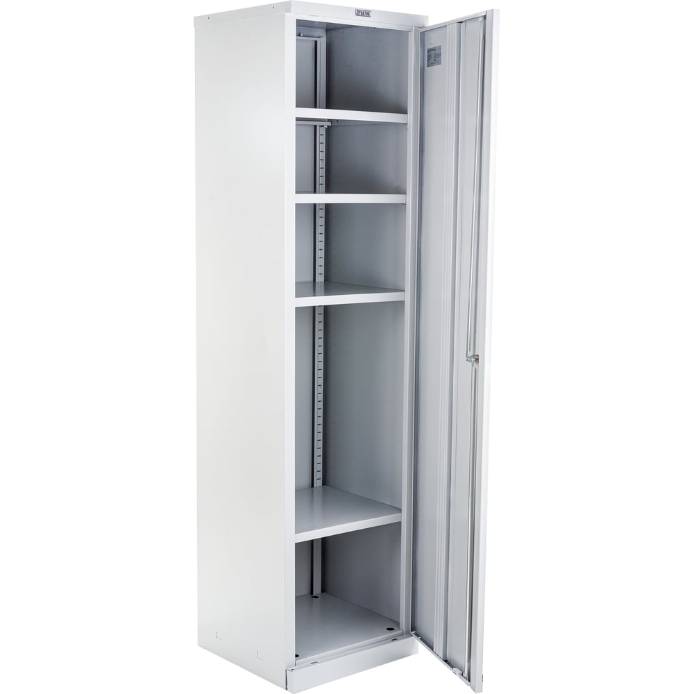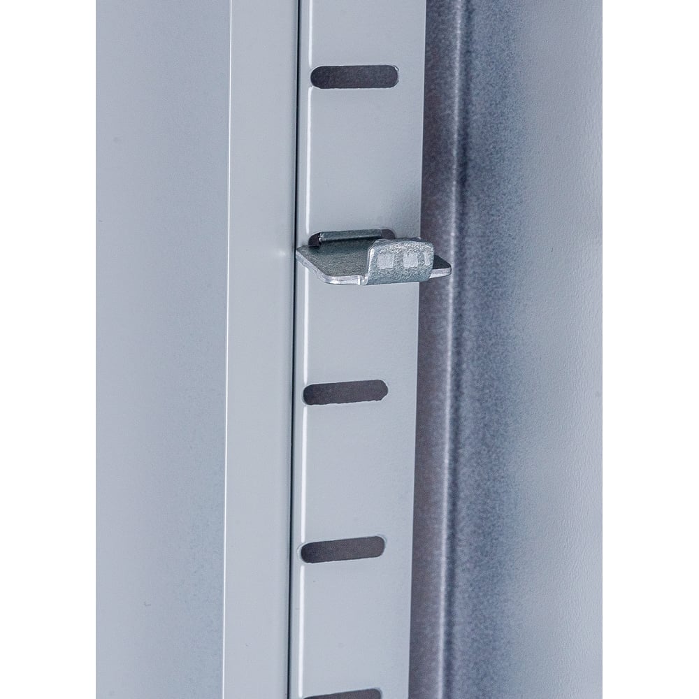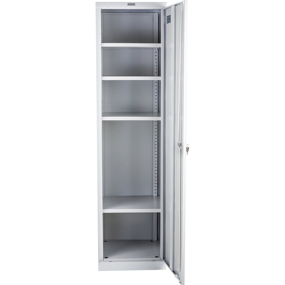 Габариты без упаковки 1830х472х458 мм Высота 1830 мм Материал сталь Ширина 472 мм Цвет серый Тип архивный Класс товара Бытовой Тип установки напольные Выдвижные ящики нет Количество дверей 1 Количество полок 4 Количество отделений 1 Глубина 458 мм Тип замка ключевой Встроенное отделение нет Тип двери распашная