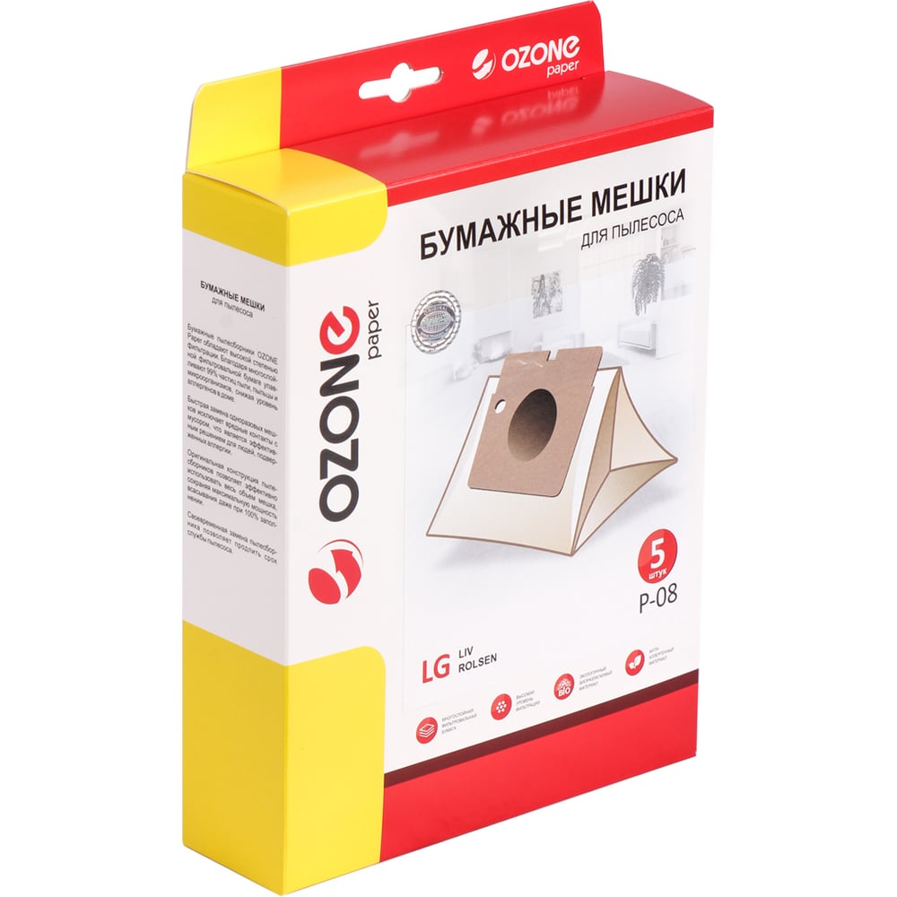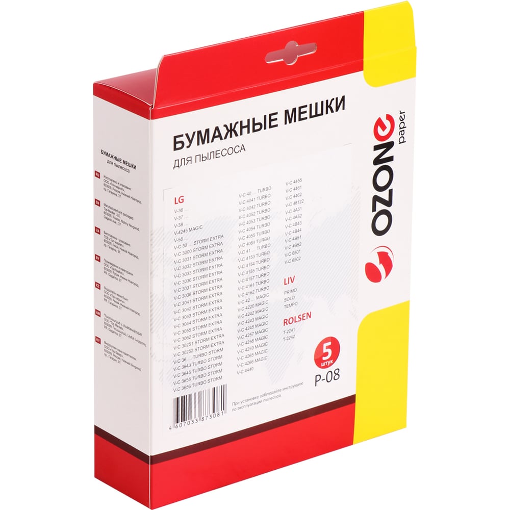 Мешки-пылесборники бумажные (5 шт; с микрофильтром) для LG/LIV/ROLSEN OZONE P-08