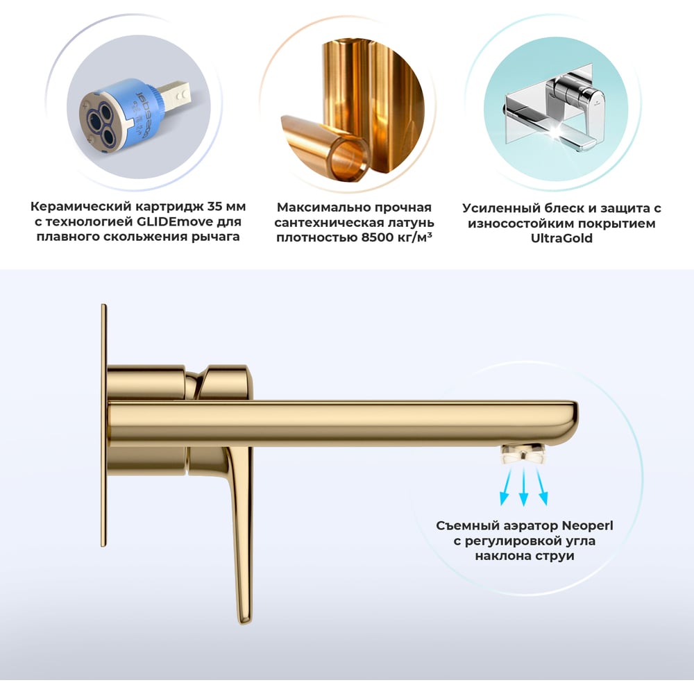 Цвет золото Тип установки настенный Стиль современный Материал корпуса латунь Серия ICON for life Поворотный излив нет Назначение для умывальника Тип крепления монтаж в стену Подсветка нет Порционный нет Гигиенический душ (комплект) нет Гибкий излив нет Донный клапан да Педальный смеситель нет Перелив в комплекте нет Для раковины чаши да Длина излива 180 мм Лейка нет Встроенная сушка нет Термостат нет С выходом под гигиенический душ нет Встраиваемый да Подводка в комплекте нет Аэратор да Переключатель на фильтр нет Тип смесителя однорычажный Количество монтажных отверстий 2 шт Форма излива воды традиционная Запорный клапан керамический картридж Присоединительный размер 3/8 дюйма Форма смесителя плоская Выдвижной излив нет Излив есть Диаметр отверстия в раковине нет мм ГОСТ/DIN нет Локтевой (хирургический) нет Расположение термостата без термостата