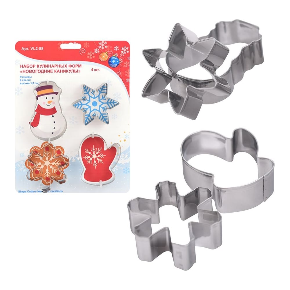 Набор кулинарных форм МУЛЬТИДОМ Новогодние каникулы, 4 шт размеры 6x6 см, высота 1,8 см VL2-88