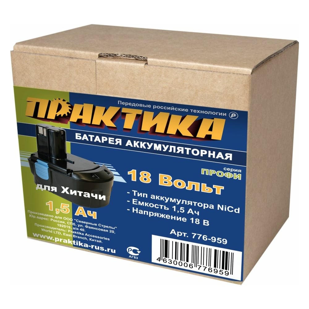 Аккумулятор (18 В; 1.5 А*ч; NiCd) для инструментов HITACHI коробка ПРАКТИКА 776-959