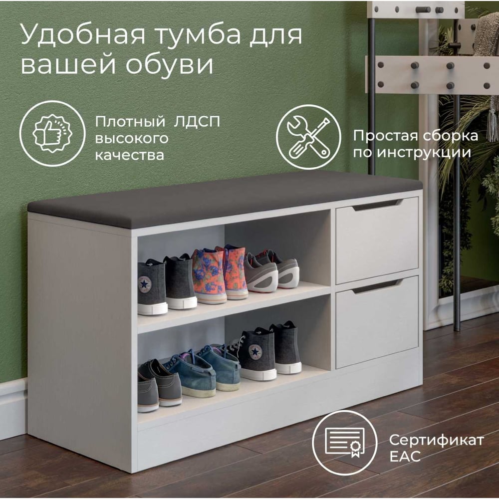 Тумба для обуви ТриЯ Тип 13, белый ясень/велюр серый 244384