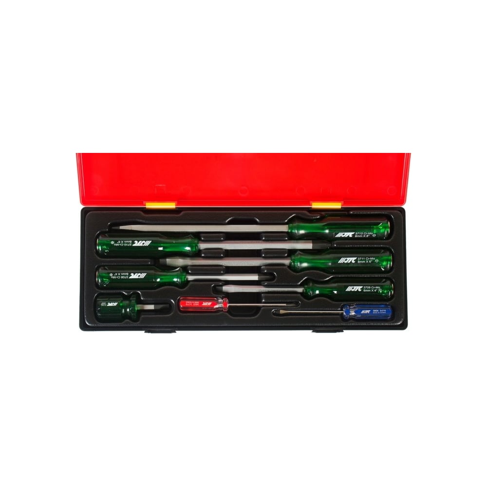 5 отверток со сквозным стержнем JTC-3708-3713 - минус 6x100 мм, 8x150 мм, 8x200 мм, плюс #2x100 мм, #3x150 мм;