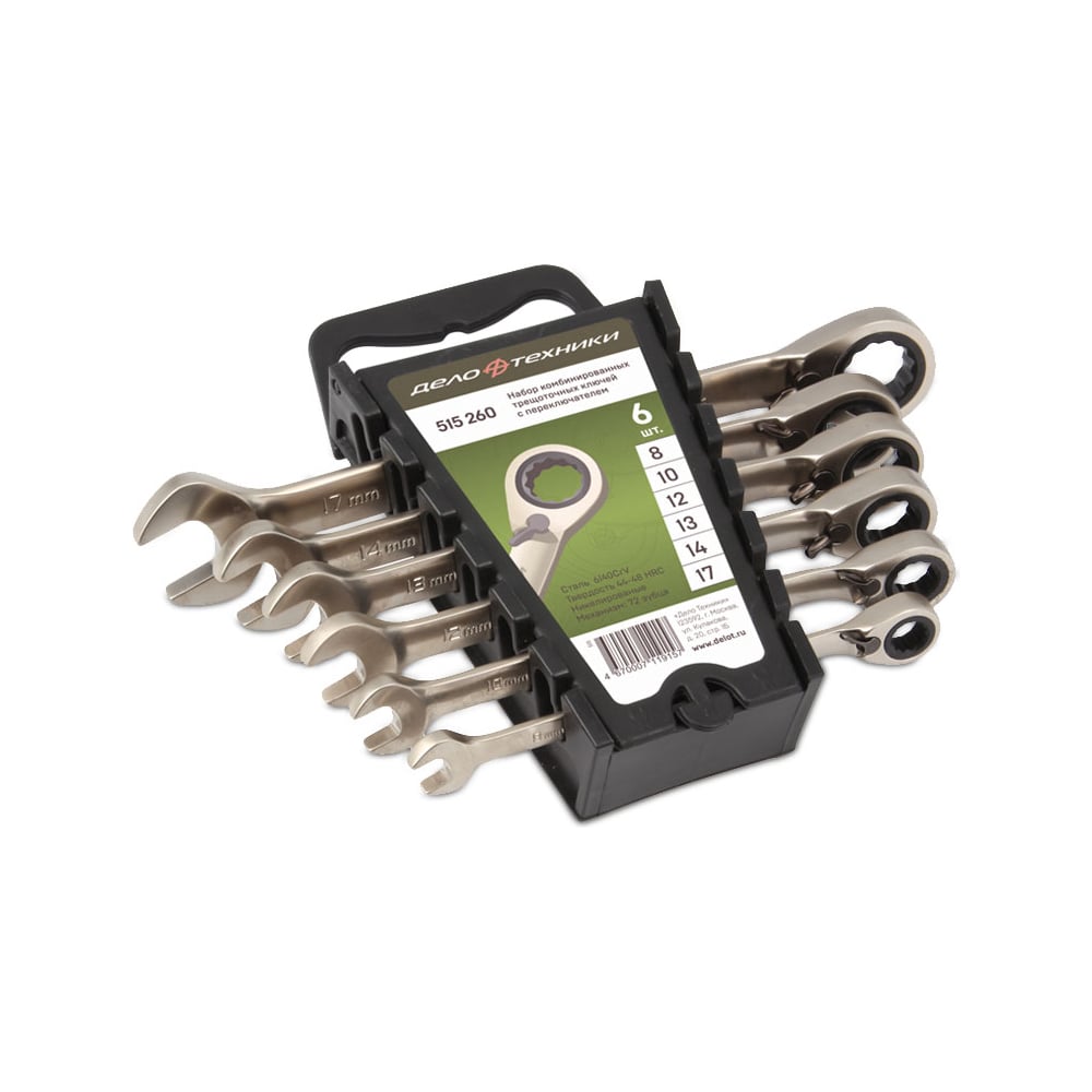 Набор ключей Дело Техники комбинированных трещоточных с переключателем 6 шт., холдер 515260
