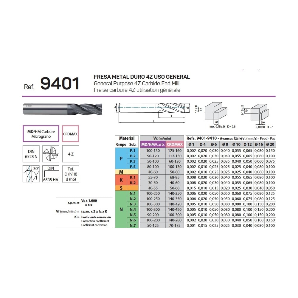 | Группа обрабатываемых материалов | P – сталь, M – нержавеющая сталь, K – чугун, N – цветные металлы, H – закаленная сталь, S – жаропрочные и титановые сплавы |