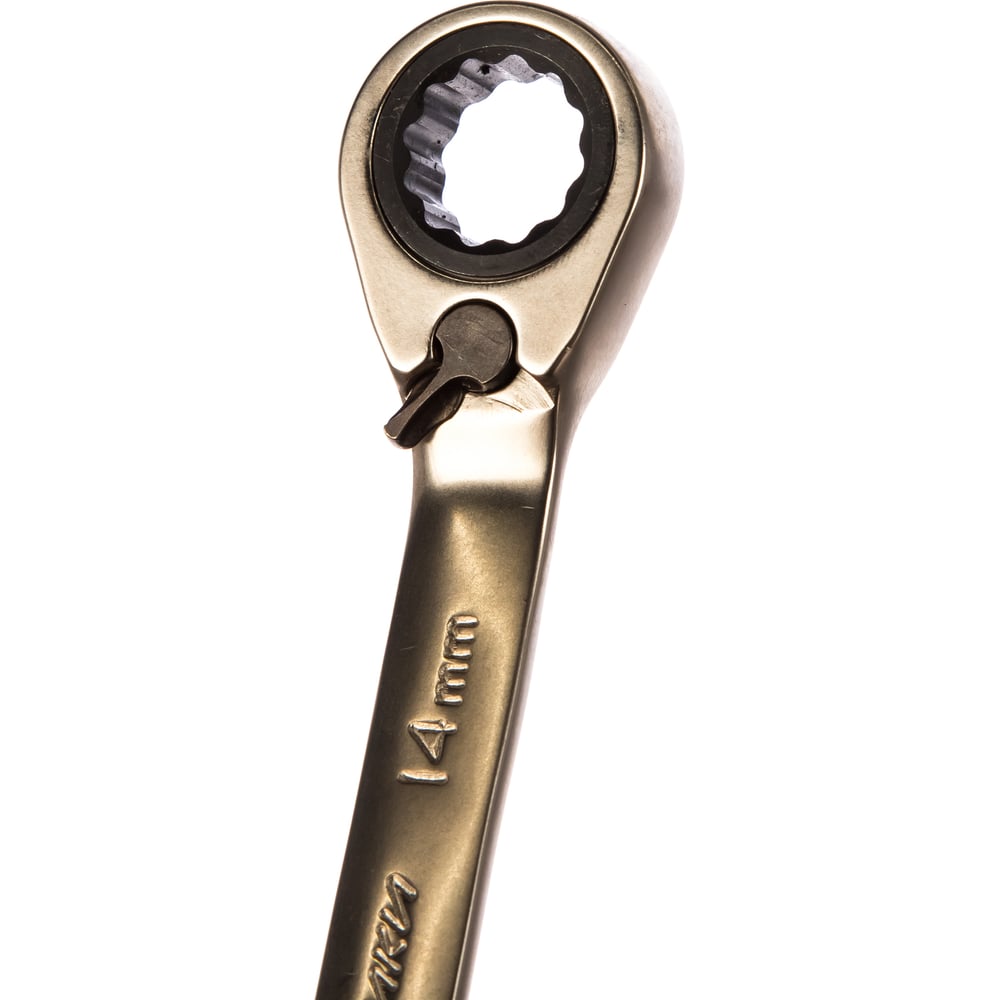 Длина 190 мм Материал CrV Покрытие никелирование Вид миллиметровый Класс товара Профессиональный Вес нетто 0.15 кг Диэлектрическое покрытие нет Трещотка есть Шарнирный механизм нет Размер max (дюйм) нет Размер min (дюйм) нет Количество граней кольцевой головки 12 Размер min (мм) 14 Размер max (мм) 14