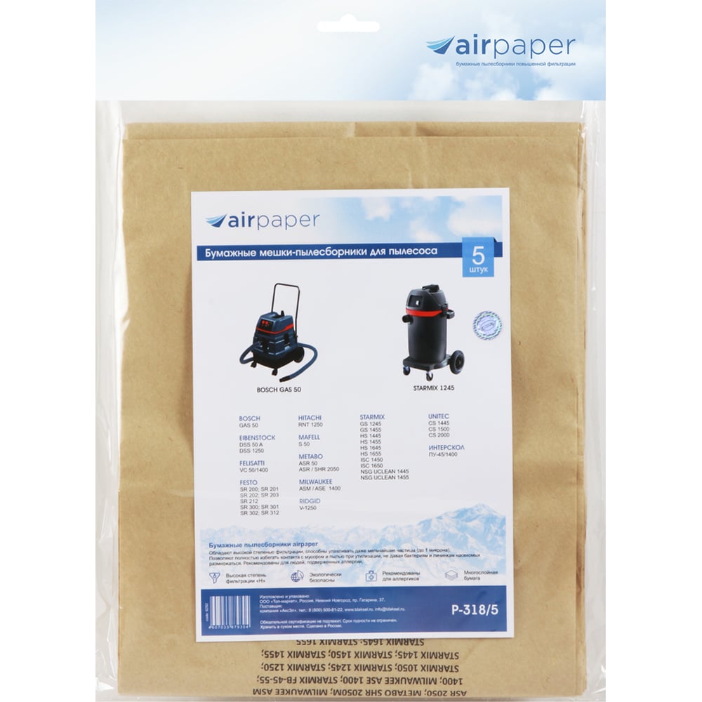 Мешок-пылесборник бумажный 5 шт. (до 72 л) AIR Paper P-318/5