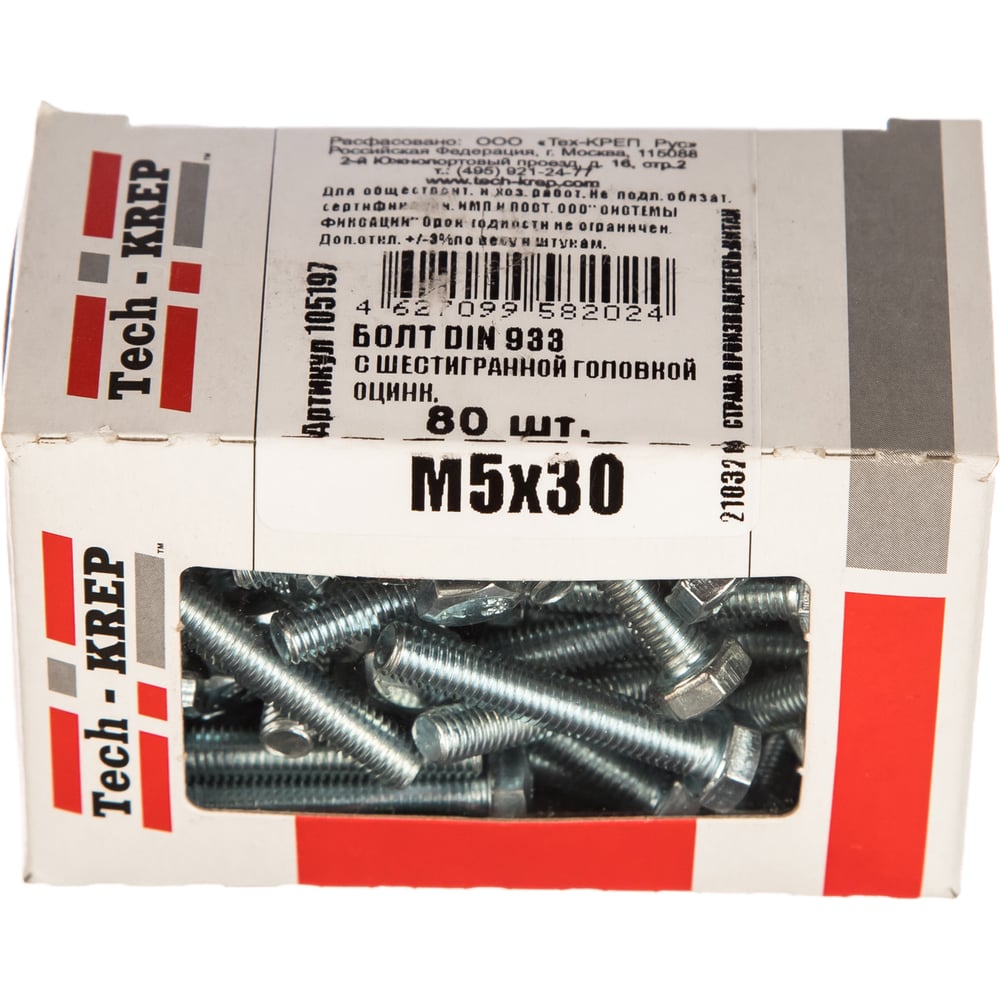 Оцинкованный шестигранный болт Tech-Krep М5х30 DIN933 80 шт. 105197