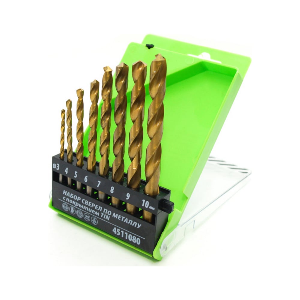 Набор сверл по металлу 8 шт с нитрид-титановым покрытием (3, 4, 5, 6, 7, 8, 9, 10 мм) Pobedit 4511080