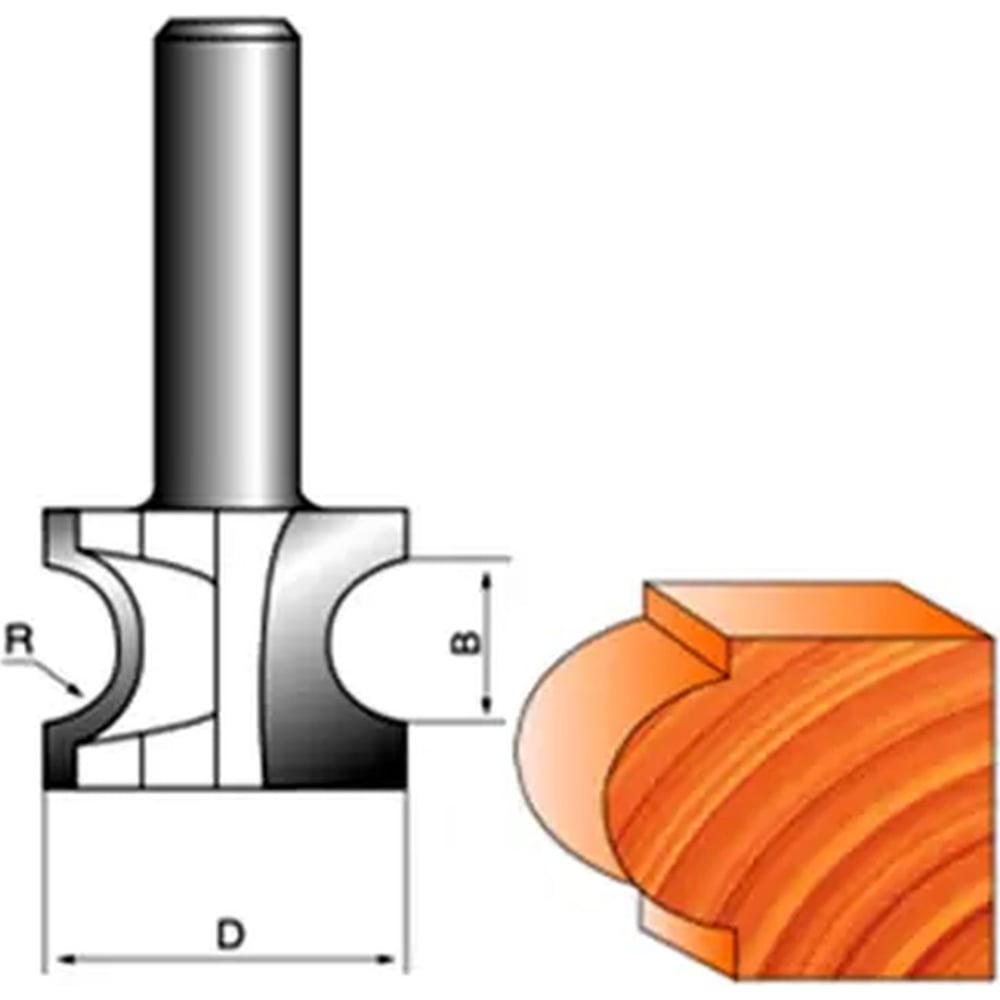 Фреза кромочная полустержневая стф-1014 24x6 мм, хв-к 8 мм Strong стф-10140024