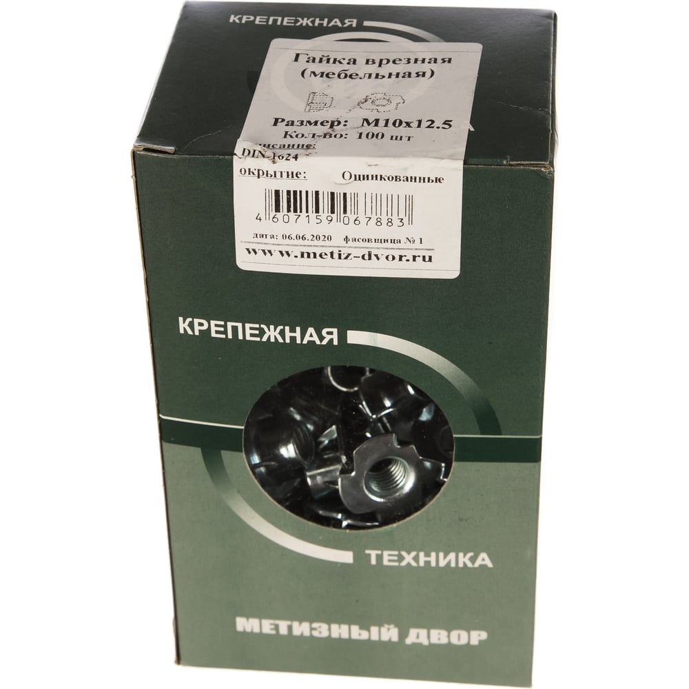 Мебельная врезная гайка Метизный двор M10x12,5 DIN 1624, 100 шт. 4607159067883
