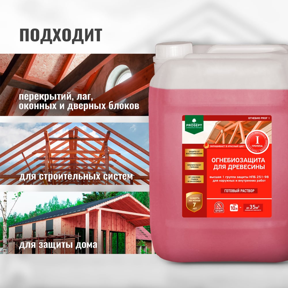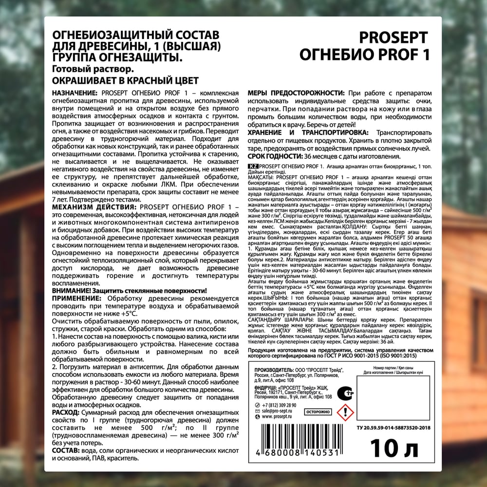 Огнебиозащита для древесины PROSEPT ОГНЕБИО PROF 1 10 л, 1-ая группа 007-10