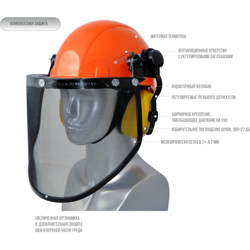 Комплект Лесоруба (каска + щиток сетка + наушники) РОСОМЗ КСН64 ШТУРМ FavoriТ СТАЛЬ 75714+04416+60105