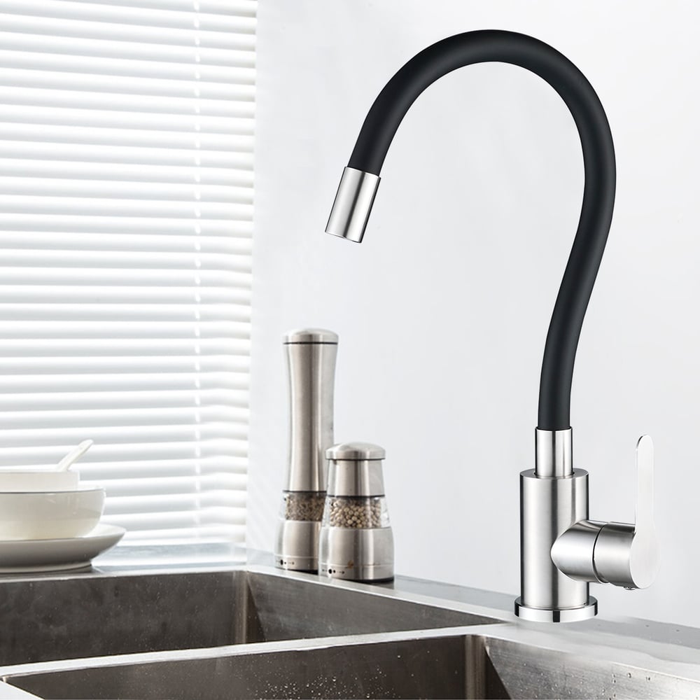 Смеситель для кухни WesnaАrt из нержавеющей стали с гибким изливом eko, сатин/черный EKO05-140